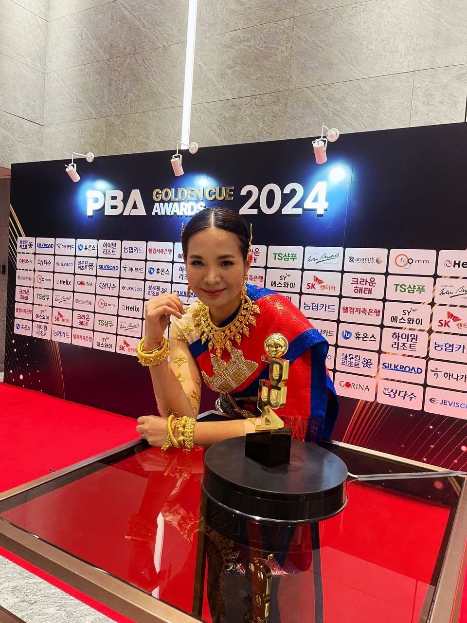 South Korea, March 20, 2026 — Cambodian athlete Sruong Pheavy was named Best Dressed in traditional Khmer Sbai at the Golden Cue Awards 2026 in South Korea, highlighting both her sporting success and cultural representation.