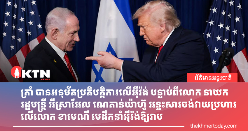 វ៉ាស៊ីនតោន/ហ្សេរុយសាឡឹម, ថ្ងៃទី ២៤ ខែមីនា — យោងតាមប្រភពមួយផ្លូចការ ដែលដកស្រង់ដោយទីភ្នាក់ងារសារព័ត៌មាន Reuters បានឱ្យដឹងថា ប្រធានាធិបតីសហរដ្ឋអាមេរិក លោក ដូណាល់ ត្រាំ បានផ្តល់ការអនុម័តចុងក្រោយសម្រាប់ប្រតិបត្តិការយោធាប្រឆាំងនឹងប្រទេសអ៊ីរ៉ង់ បន្ទាប់ពីមានការសន្ទនាតាមទូរស័ព្ទនៅនាទីចុងក្រោយជាមួយនាយករដ្ឋមន្ត្រីអ៊ីស្រាអែល លោក បេនហ្សាមីន ណេតាន់យ៉ាហ៊ូ ដែលបានជំរុញឱ្យមានសកម្មភាពកំណត់គោលដៅលើមេដឹកនាំកំពូលរបស់អ៊ីរ៉ង់ លោក អាលី ខាមេណី (Ali Khamenei)។