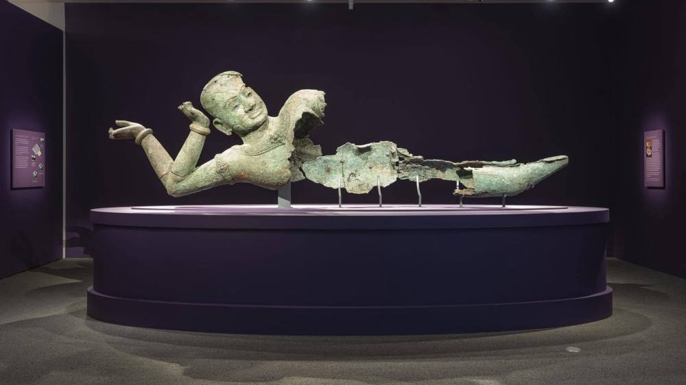 The large-scale sculpture, on loan from the National Museum of Cambodia, is a centerpiece of a Southeast Asian exhibition that showcases the richness and depth of Cambodia’s artistic heritage.
