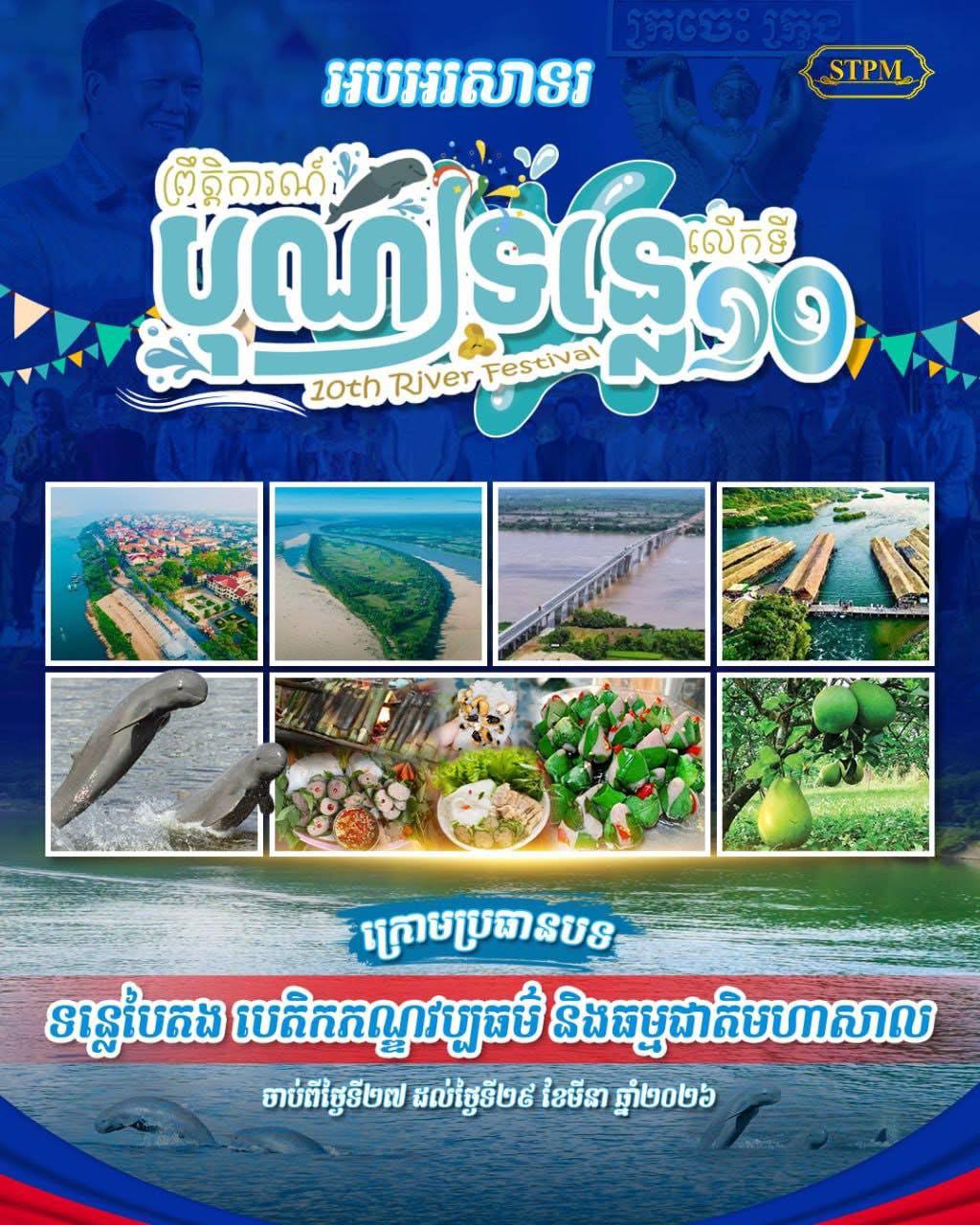 Kratie, March 27, 2026 — Cambodia is holding the 10th River Festival in Kratie province from March 27 to 29 under the theme “Green Rivers, Cultural and Natural Heritage.” The event aims to promote tourism while highlighting the natural and cultural richness of riverside communities, particularly along the Mekong River.