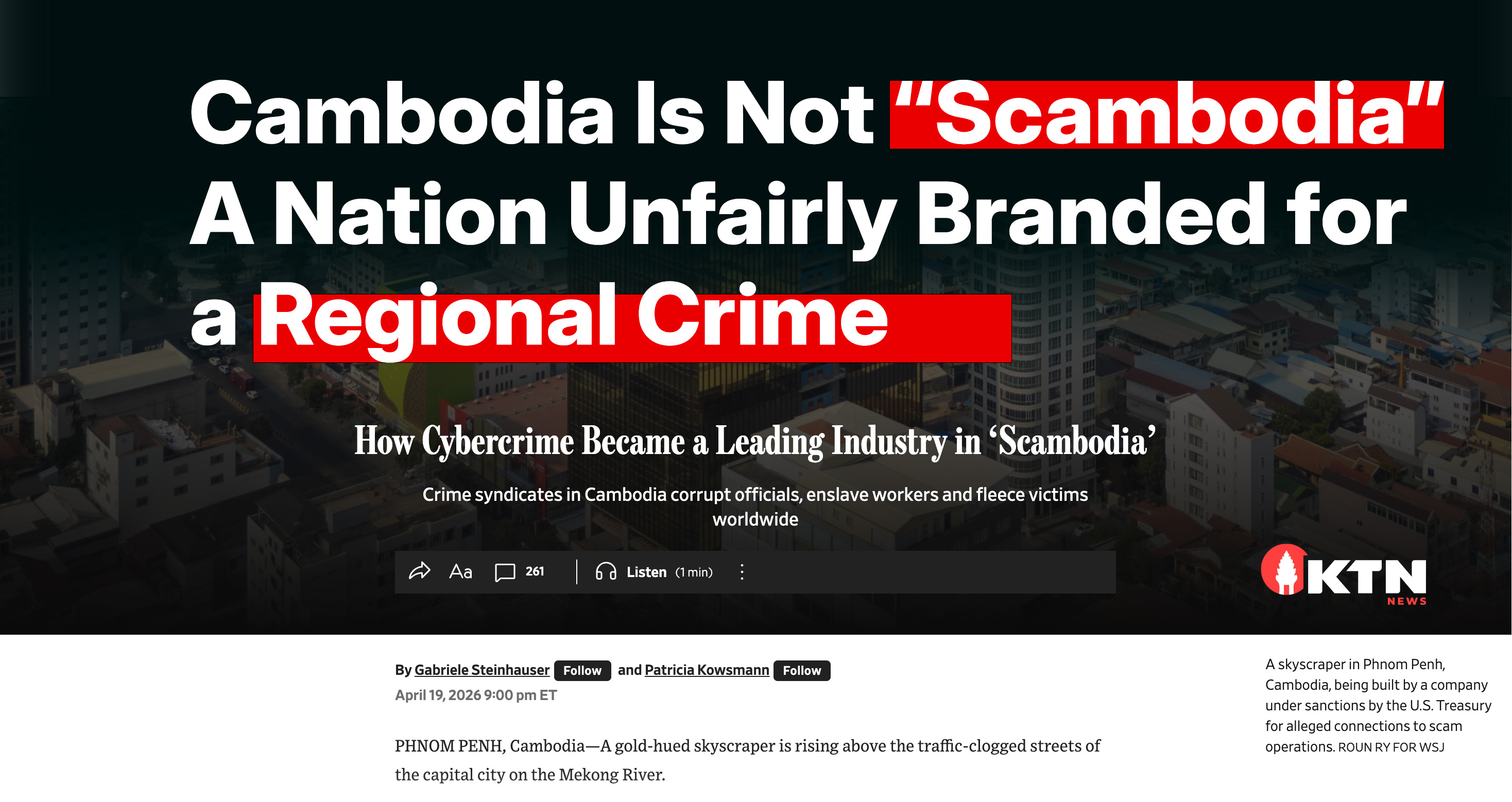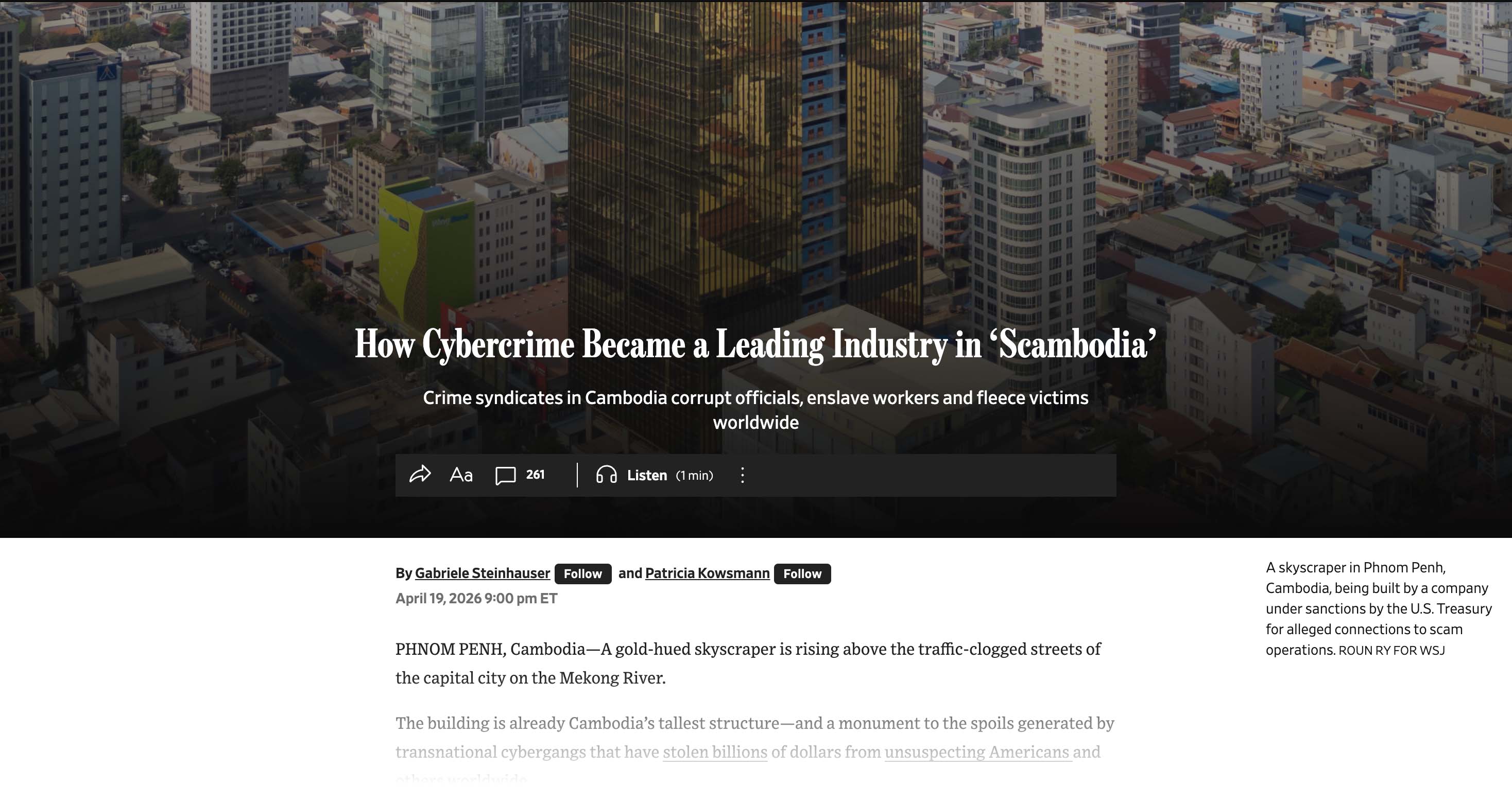 The Wall Street Journal’s recent reporting on cybercrime in Cambodia makes for dramatic reading. The nickname “Scambodia,” the image of a gold skyscraper rising above Phnom Penh, and the sweeping portrayal of a nation captured by transnational cr